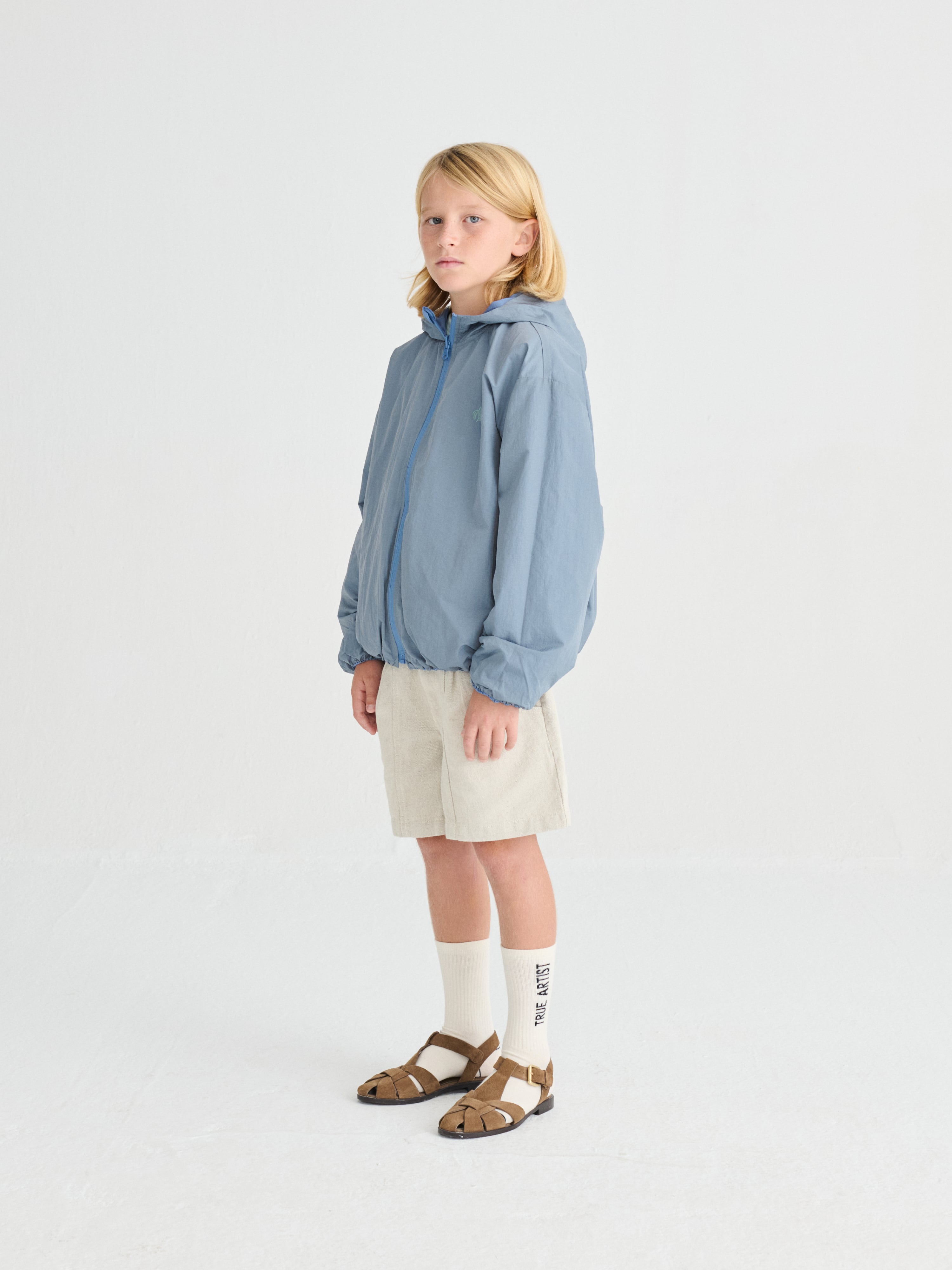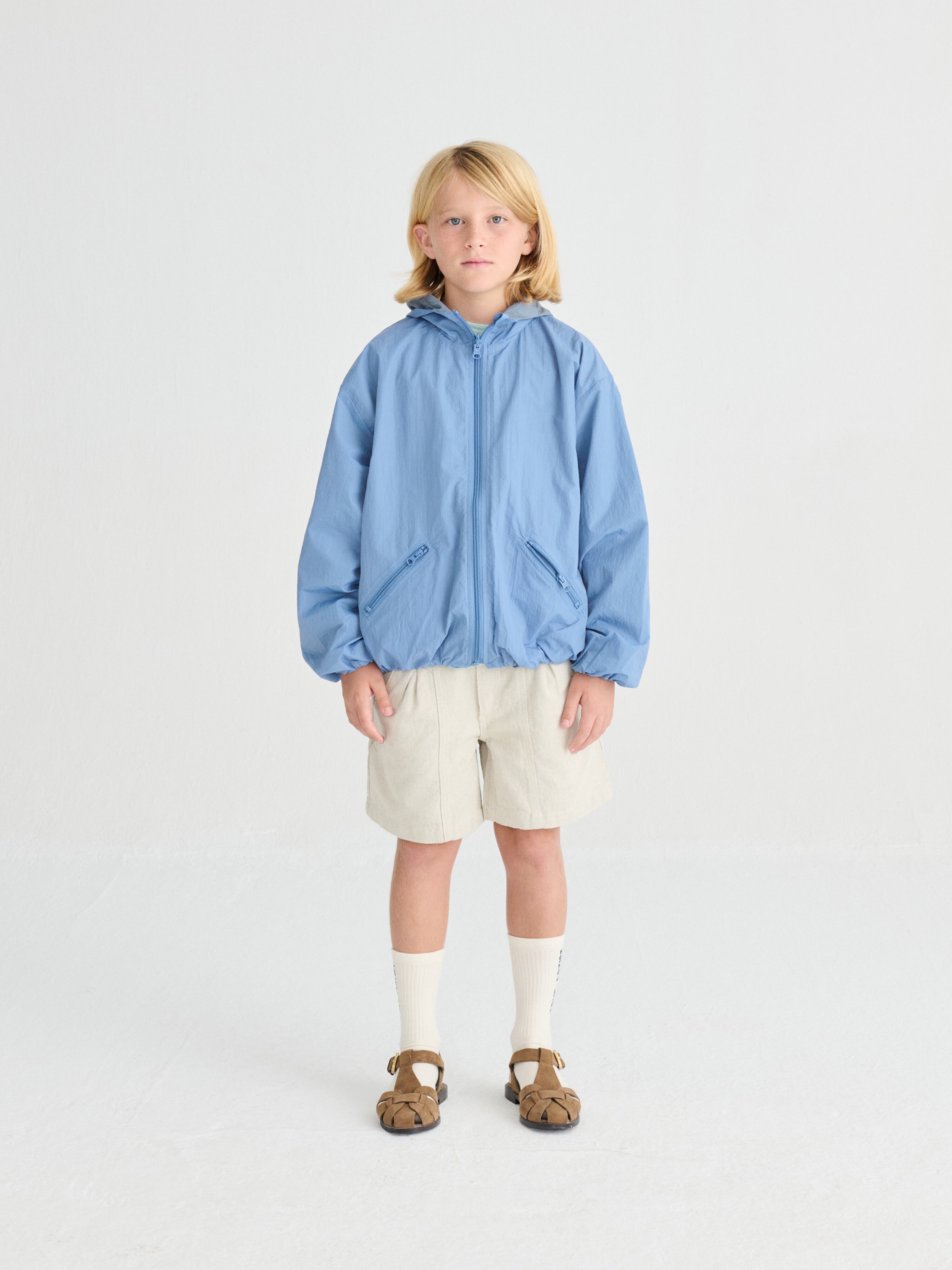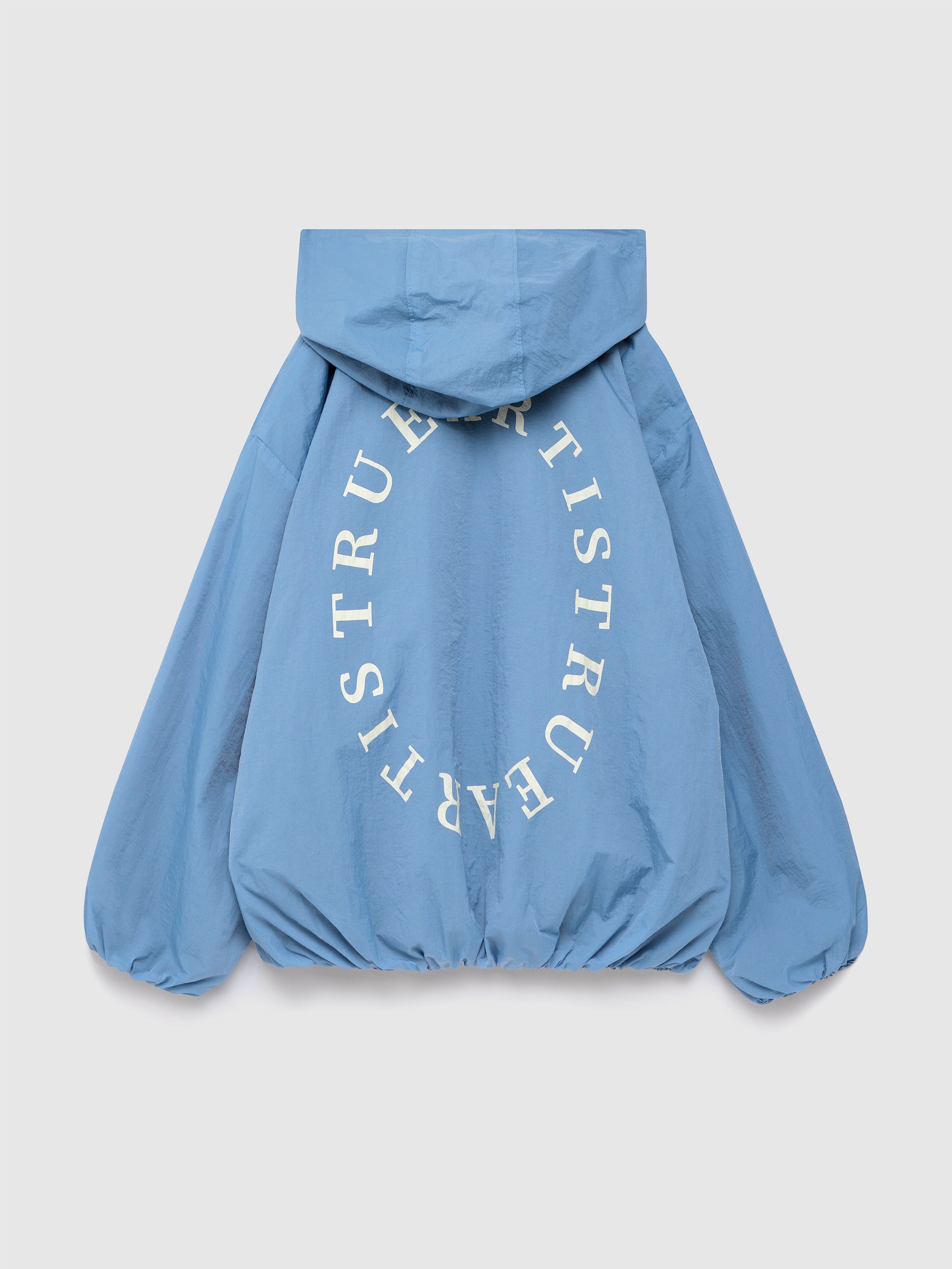 リバーシブルウィンドブレーカーNo.02(カンパニュラ)は、100%ポリアミド製です。フード付きの軽量ジャケットで、フロントジッパー開閉、外側のサイドポケットにもジッパー、裾と袖口は伸縮性を備えています。ジャケットの両サイドにブランドのディテールが施されています。ゆったりとしたフィット感です。中国製。