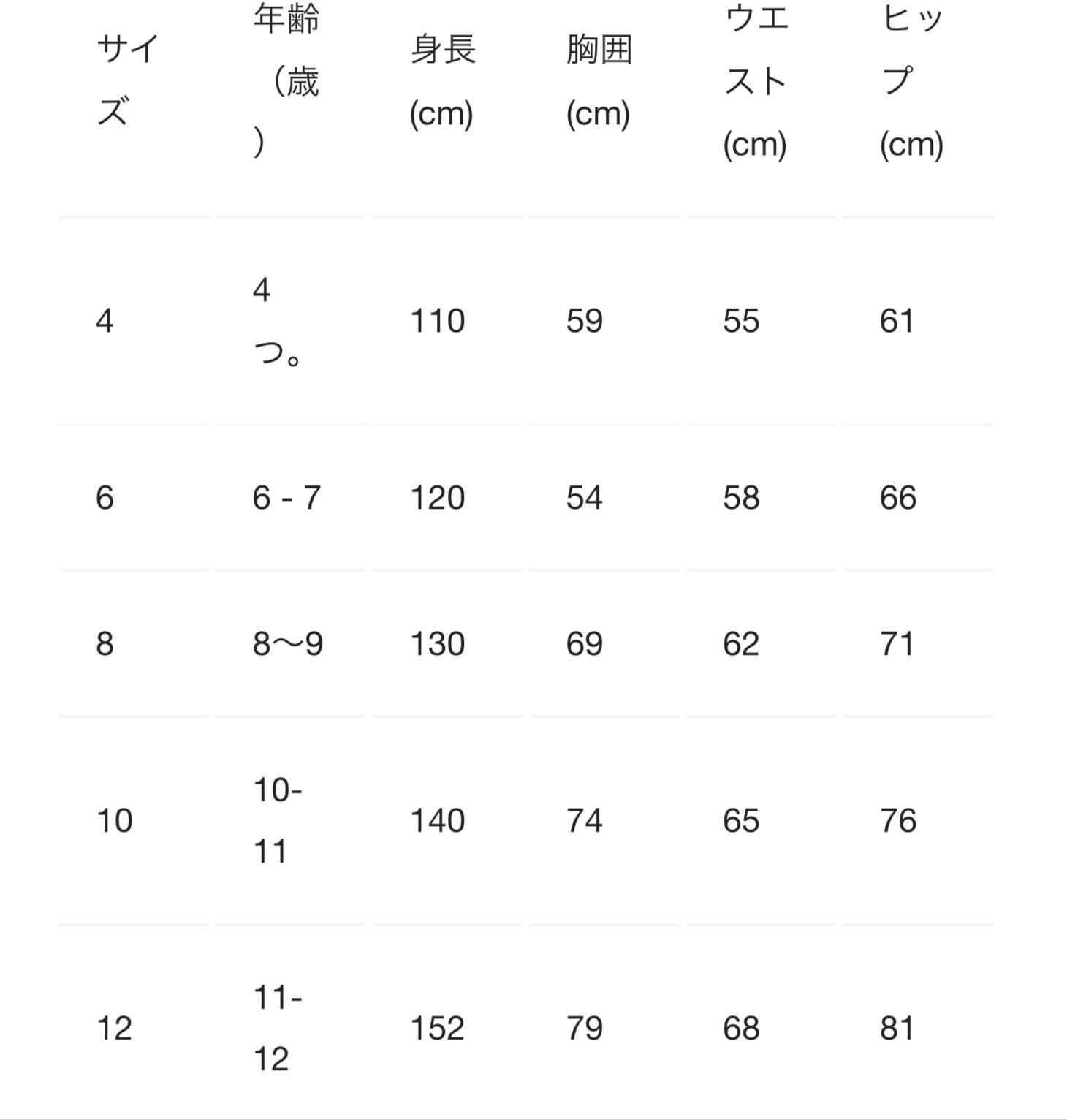 size:4(110),6(120),8(130),10(140)
